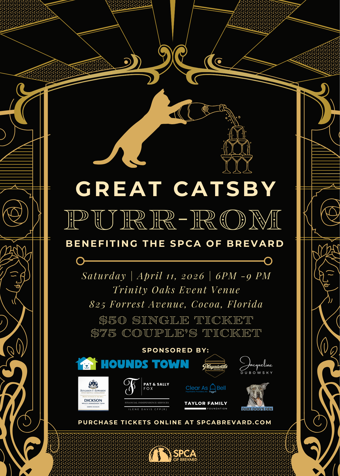 The SPCA of Brevard is thrilled to bring back Purr-Rom in 2026 with an all-new theme: The Great Catsby. Slip into your finest 1920s-inspired attire, dust off those dancing shoes, and prepare for an unforgettable evening in support of shelter pets.